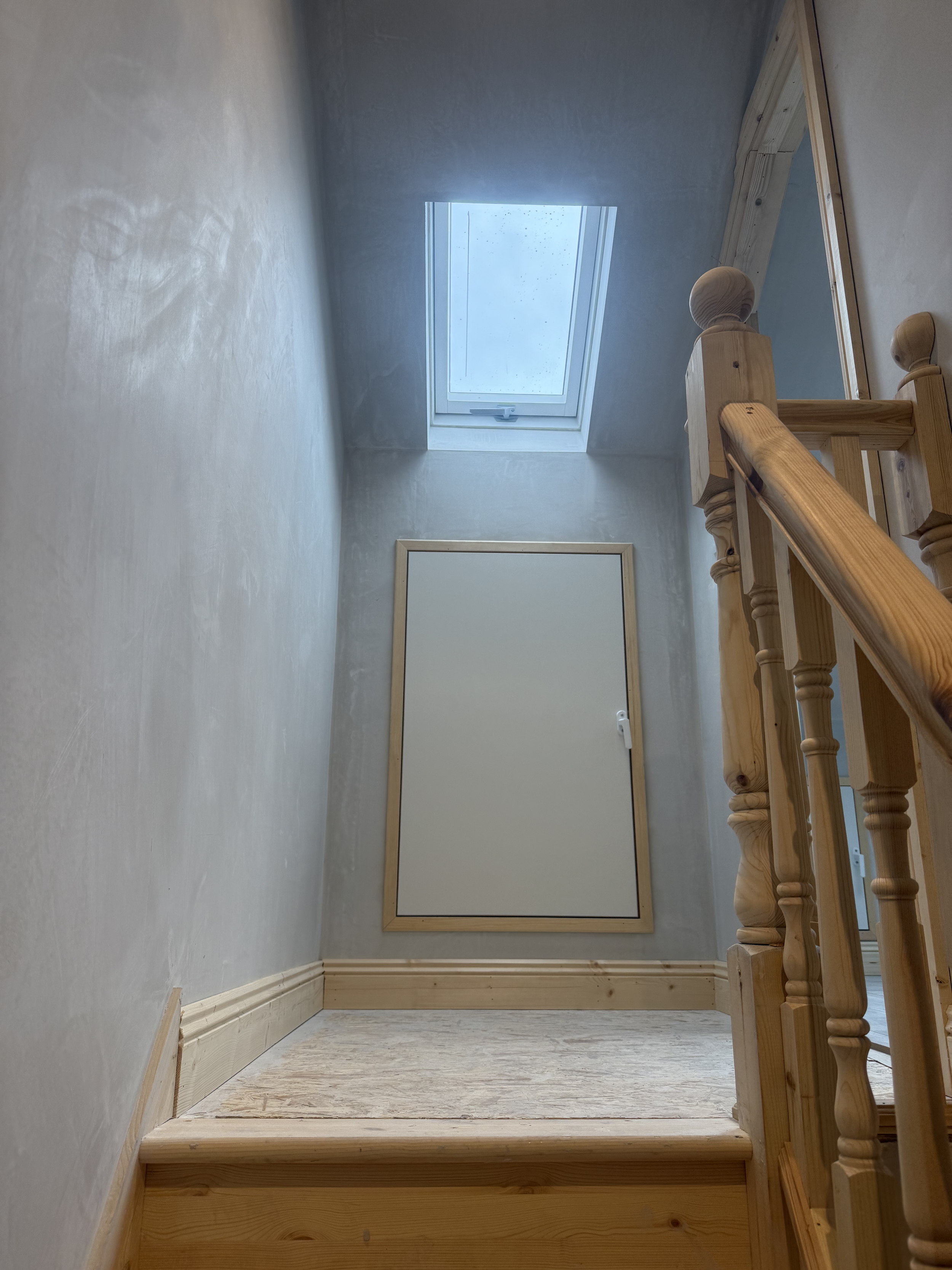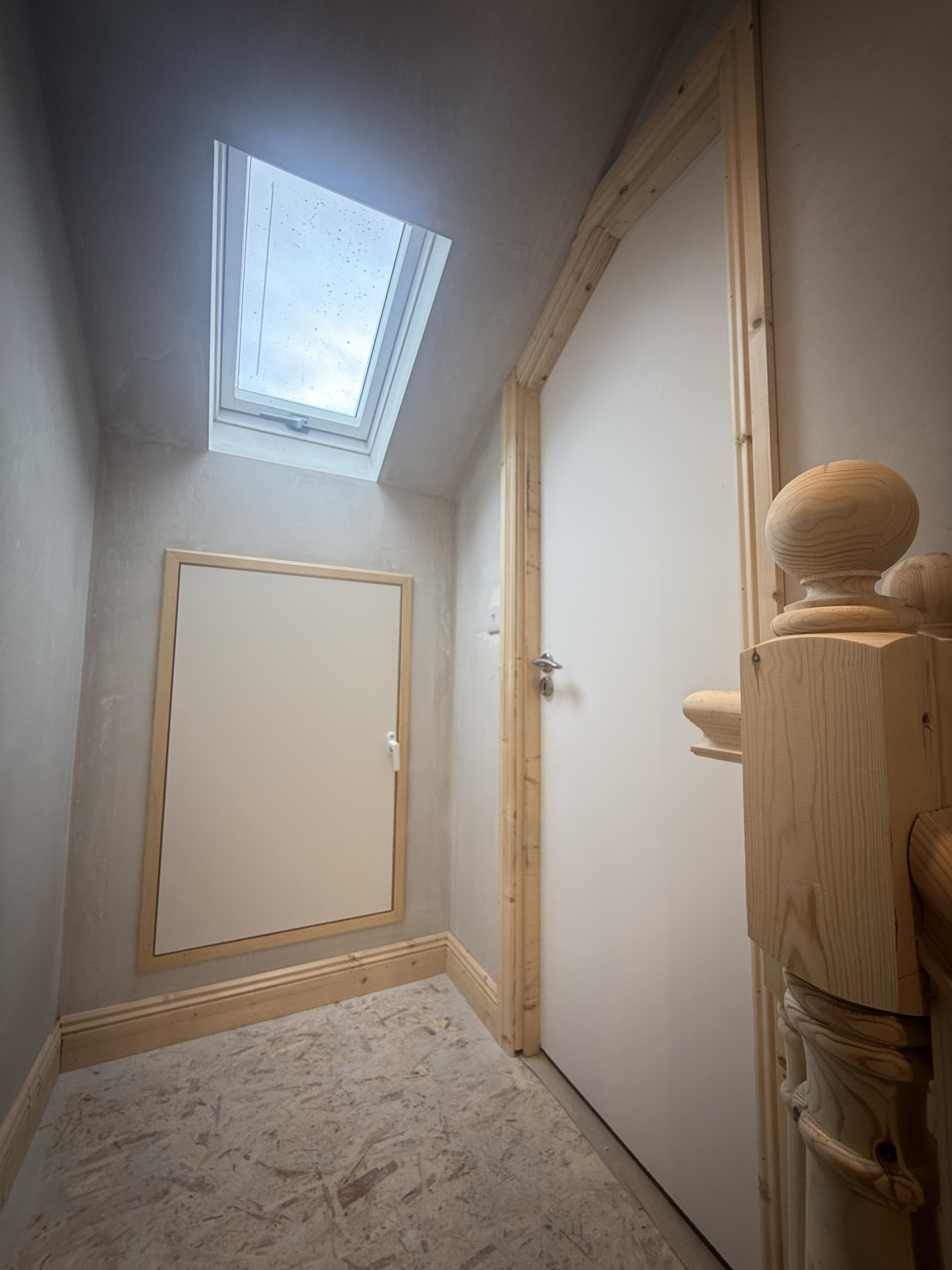 We designed and executed a full attic conversion, with a bespoke staircase build that integrated naturally with the existing landing. The new top floor includes a large Velux window landing for light flow, fresh plaster finishes, new electrics, and a fully insulated attic space with twin roof windows. Every stage, from structure to finishing was handled with precision to ensure the conversion met building regulations and maximized light and comfort.